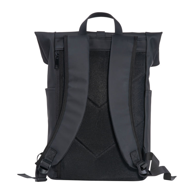 Polyuretánból (PU) készült laptop hátitáska 15-16 hüvelykes laptopok számára. Két cipzáras zseb található az elején, egy nagy főrekesz hálós és cipzáras zsebekkel, valamint egy párnázott laptoprekesz a hátoldalon. Párnázott vállpántokkal, hordozófüllel és állítható záródású főrekesszel rendelkezik.