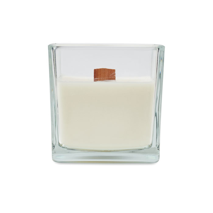 Nagy, vanília illatú, növényi alapú viaszgyertya üvegben, fa kanóccal. 600 g. Égési idő 65 óra.