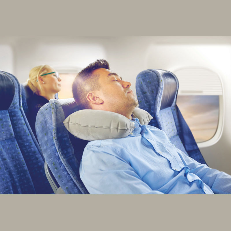Felfújható nyakpárna velúr anyagból. Megtámasztja a nyakat, így kényelmessé teszi a pihenést egy hosszabb út alkalmával.