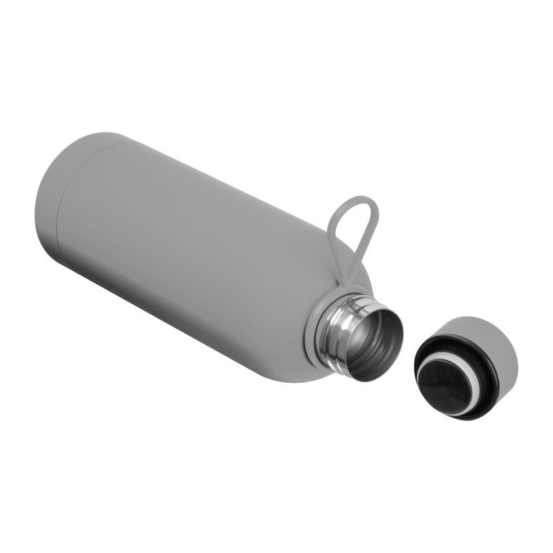 Tartós, praktikus kialakítású rozsdamentesacél kulacs. A csúszásmentes, gumírozott felület biztos fogást garantál, a hordozófül pedig kényelmes megoldást kínál a mindennapi használathoz.
