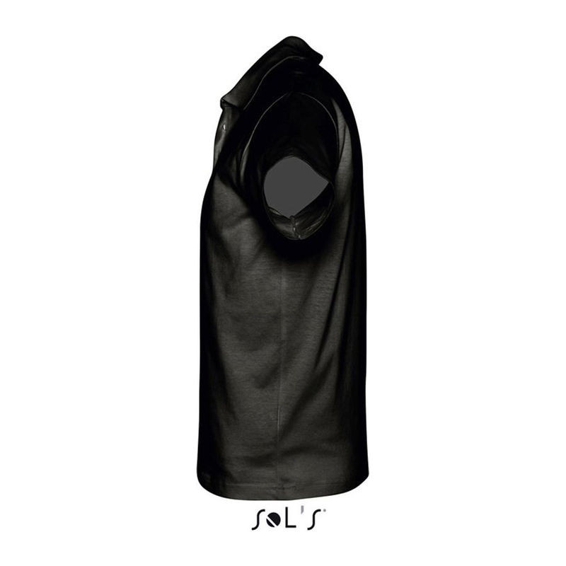 100% félig fésült gyűrűs fonású pamut. Stílus. A nyakán szalaggal megerősítve. Bordázott gallér. Rövid ujjú. 3 színazonos gomb. Pótgomb a belső varráson.