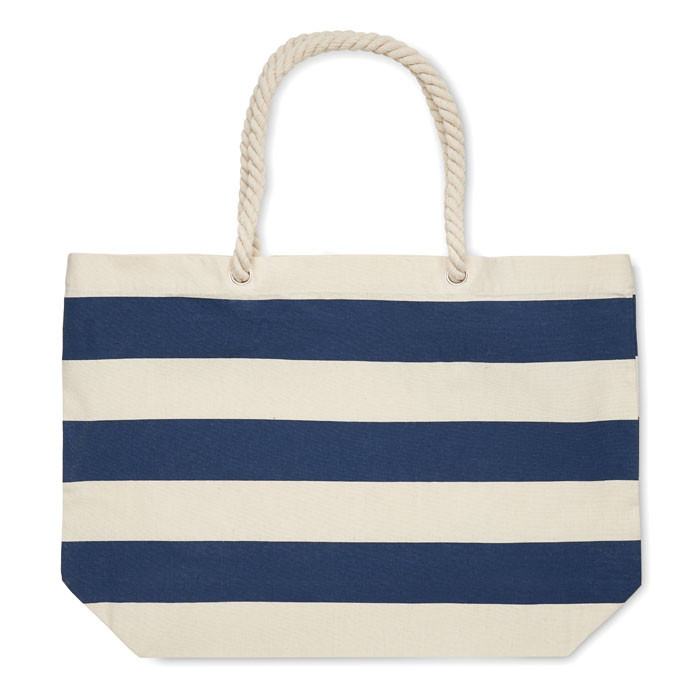 Csíkos strand- vagy bevásárlótáska pamutból, kötél fülekkel. 220 g/m² vastag anyag.