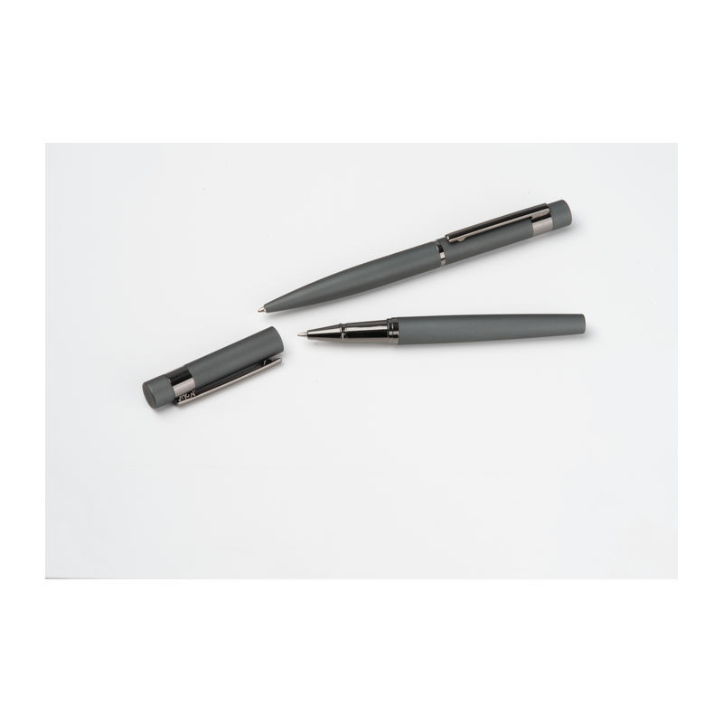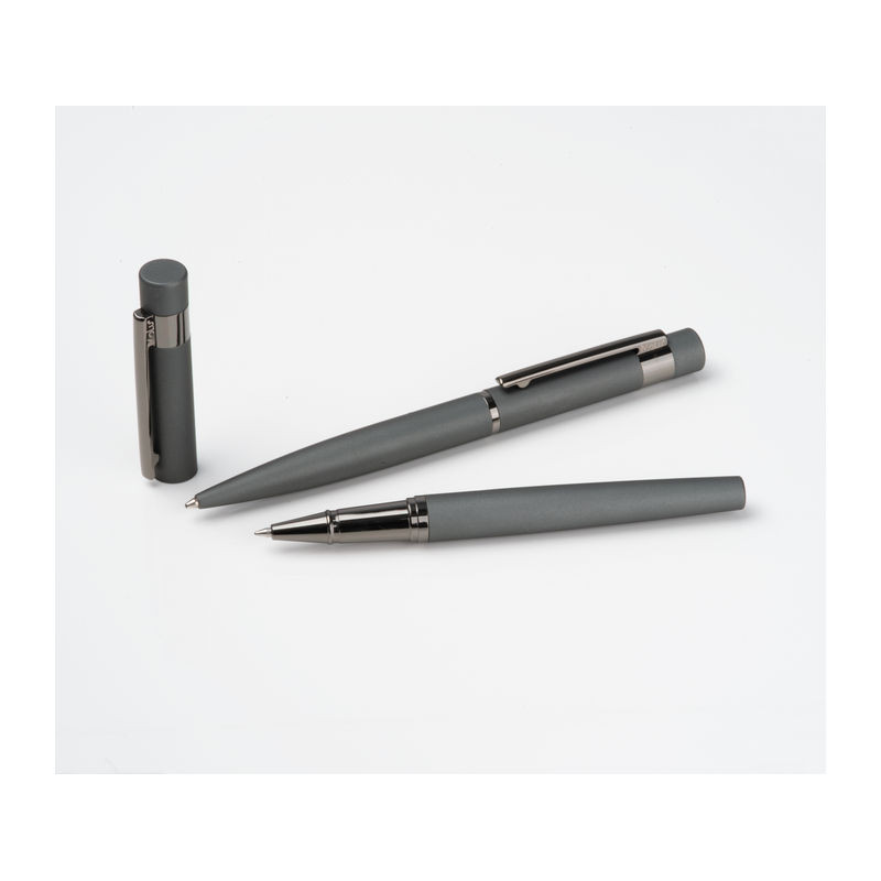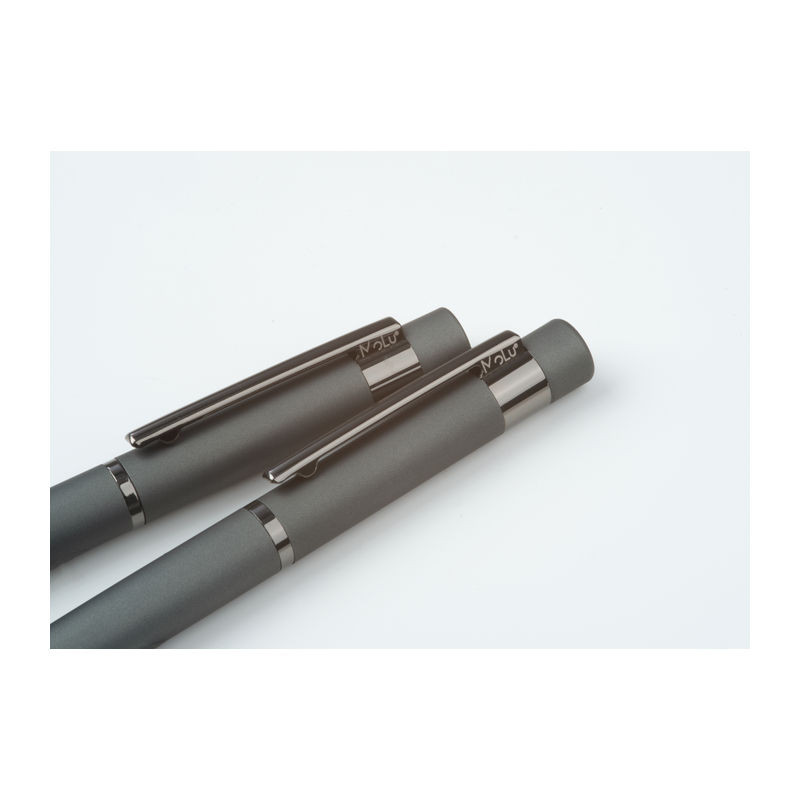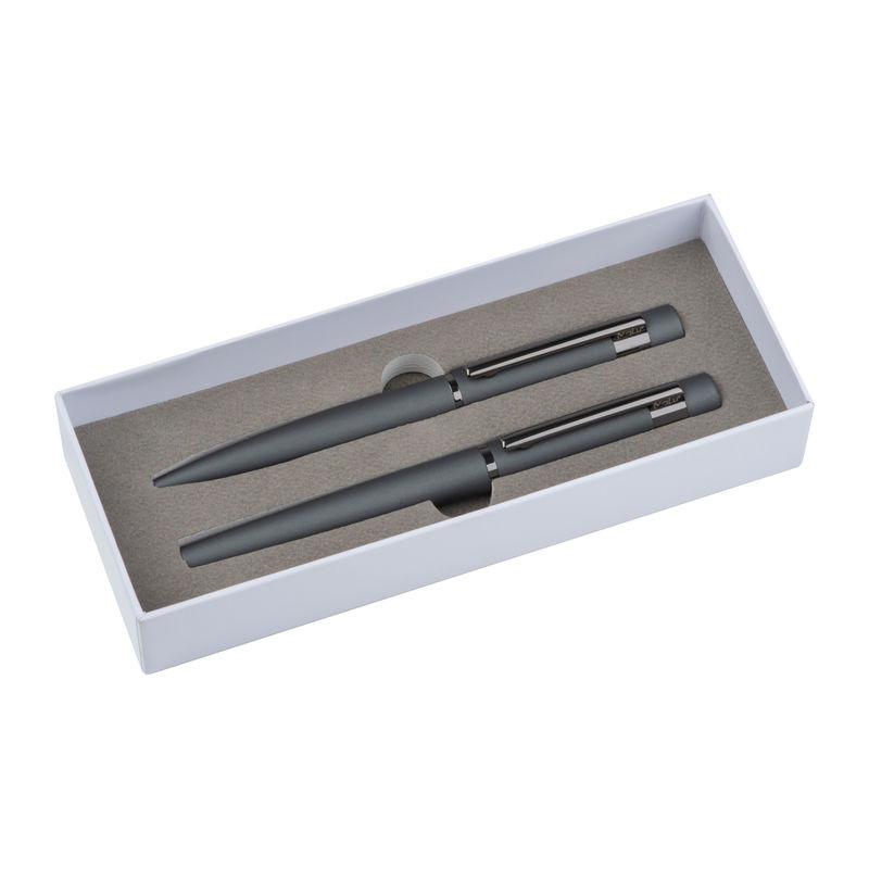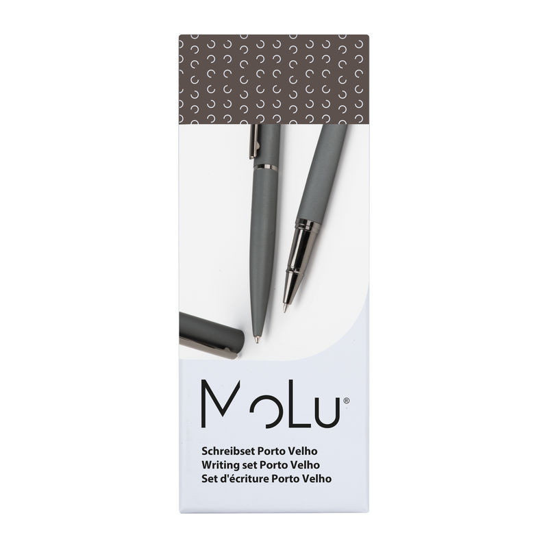 Elegancia és kényelem egy készletben MoLu kollekciónkból! Csavaros mechanizmusú, újrahasznosított rozsdamentes acél golyóstollat és rollertollat tartalmaz. A készlet gumírozott tolltesttel érkezik az optimális fogás és a stílusos megjelenés érdekében. Tökéletes mindennapi használatra vagy személyes ajándéknak. Exkluzív ajándékcsomagolásban és 2 év garanciával.
