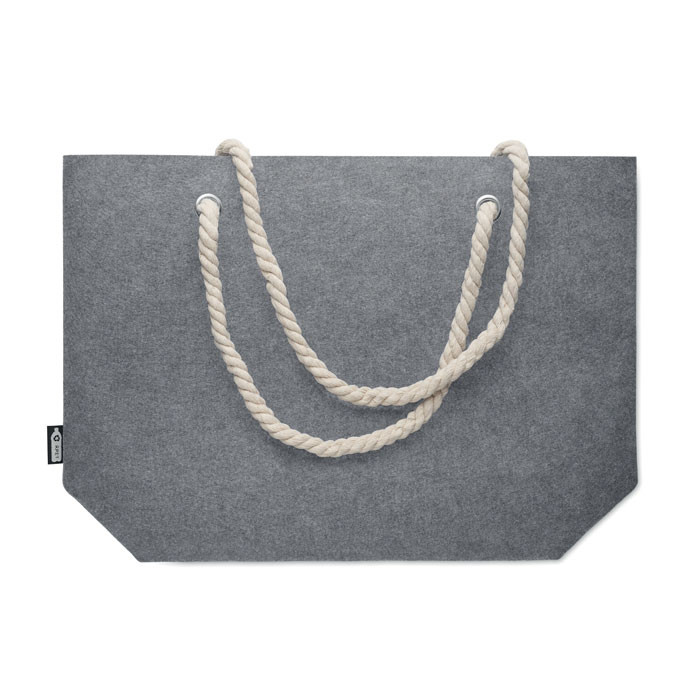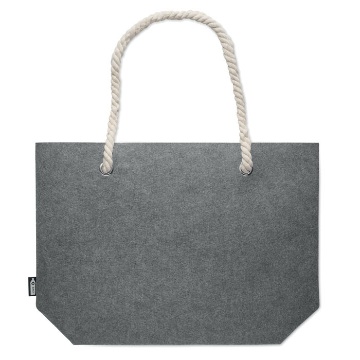 RPET filcből készült strand- vagy bevásárlótáska kötél fülekkel. Anyagvastagság: 2 mm.
