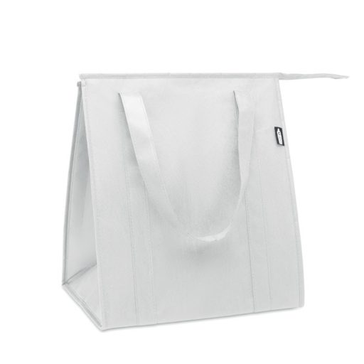 Hűtőtáska 80g/m² vastag, RPET nemszőtt anyagból. Szigetelés: alumíniumfólia. Kapacitás: 25 l. Tetején cipzárral záródó, fő rekesz, az alján kivehető, PP merevítővel.