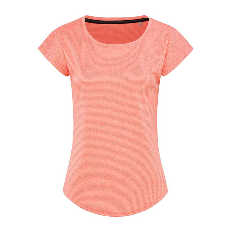 Környezetbarát, újrahasznosított anyagból. Modern, melírozott megjelenés, kb. 4 palackból készült. Különösen előnyös női fazon, ejtett vállú ujjakkal és lekerekített szegéllyel, nincs címke a galléron, elszakítható címke az oldalsó varrásban, 100% ACTIVE-DRY° poliészter (50% újrahasznosított)