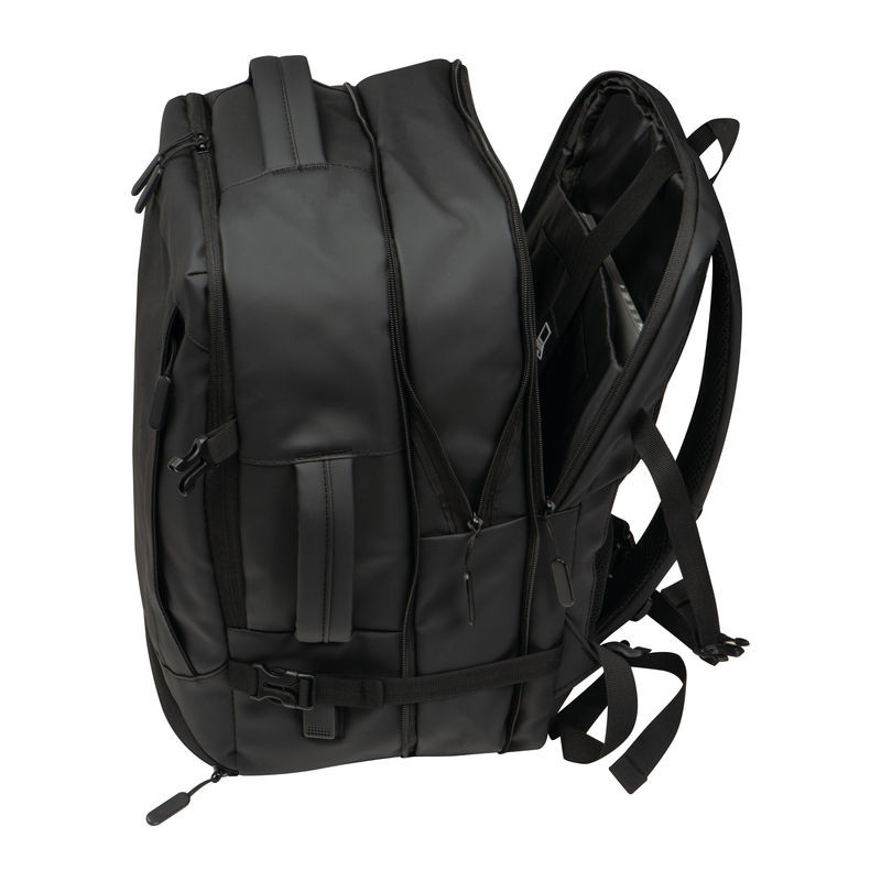 Kiváló minőségű bővíthető hátizsák 300D poliészterből. Ez a vízálló laptop hátizsák több rekesszel rendelkezik: egy zárható laptoptartó rekesszel és további cipzáros zsebekkel, egy biztonsági zsebbel hátul, egy oldalzsebbel hálós betéttel és bővíthető cipzárral, egy szennyesnek való rekesszel az alján, egy párnázott cipzáras zsebbel a táska elején, különböző praktikus belső zsebekkel. Ezen kívül tartalmaz egy USB-portot kábellel, két hordozófület, egy bőröndre rögzíthető pántot, párnázott vállpántokat, párnázott hátrészt és egy cipzárat a hátizsák bővítéséhez. Tökéletes társ nem csak üzleti utakra.