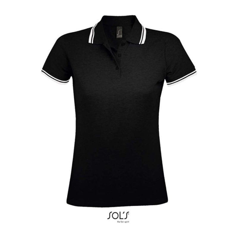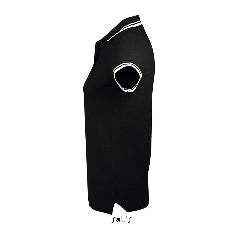 SOL's Pasadena Női rövid ujjú piké póló, 100% gyűrűsfonású pamutból, csíkozással a galléron. Három darab színre szín gombbal. Fit szabással, oldalsó sliccel.