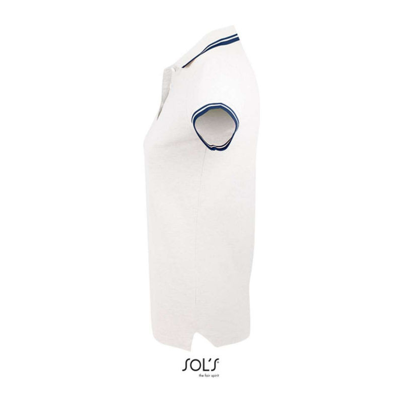 SOL's Pasadena Női rövid ujjú piké póló, 100% gyűrűsfonású pamutból, csíkozással a galléron. Három darab színre szín gombbal. Fit szabással, oldalsó sliccel.