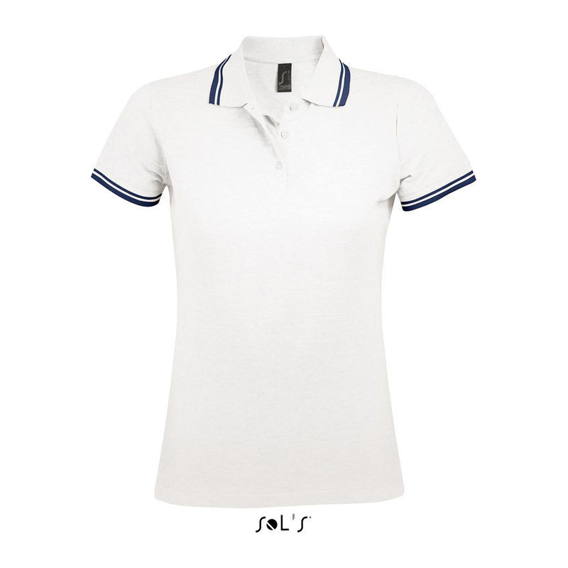 SOL's Pasadena Női rövid ujjú piké póló, 100% gyűrűsfonású pamutból, csíkozással a galléron. Három darab színre szín gombbal. Fit szabással, oldalsó sliccel.