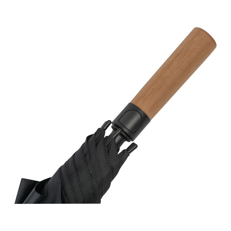 Klasszikus, 23 hüvelykes MoLu esernyő, amely stílust és funkcionalitást ötvöz tökéletes harmóniában. Ez a prémium esernyő automatikus nyitó mechanizmussal rendelkezik a könnyű kezelhetőség érdekében. A ponyva RPET anyagból készült, amely megbízható védelmet nyújt eső és szél ellen, míg a masszív üvegszálas bordák fokozott tartósságot biztosítanak. Az elegáns, akácfából készült markolat kifinomult megjelenést kölcsönöz, és kényelmes fogást garantál. Ez az esernyő nemcsak praktikus társ a rossz időben, hanem vonzó promóciós ajándék is. 2 év garanciával.