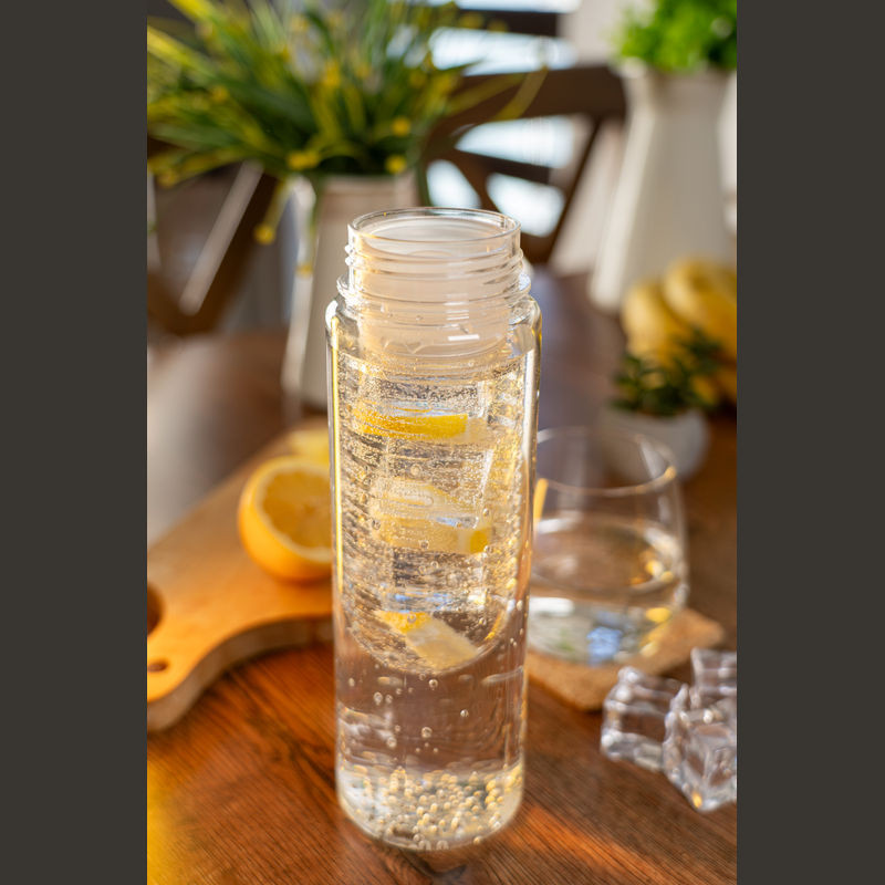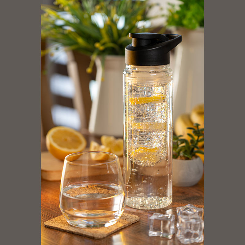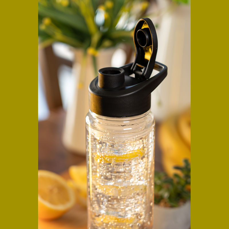 Műanyag ivópalack kivehető szűrőbetéttel, praktikus ivószárral és kupakba épített tartófüllel. Űrtartalom 700 ml.