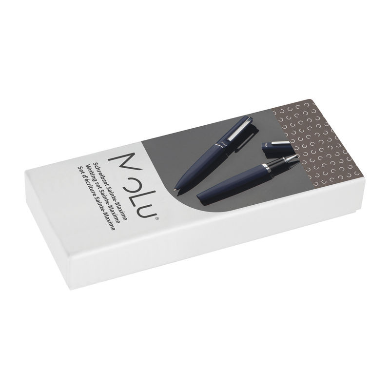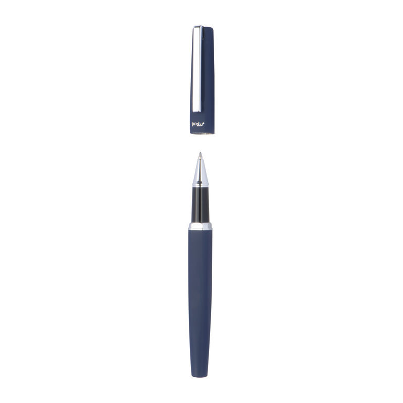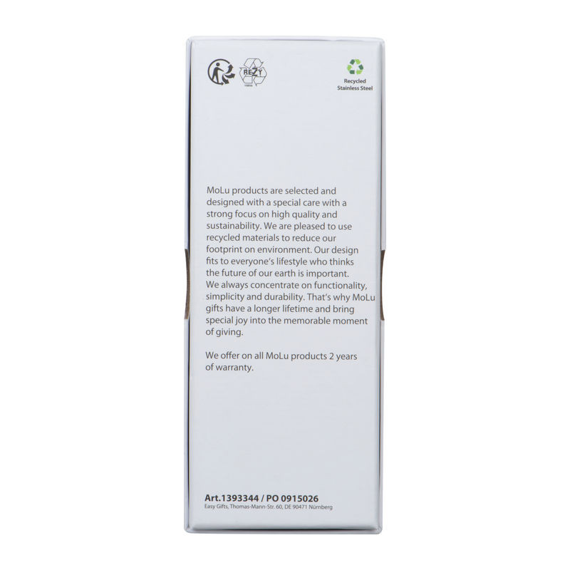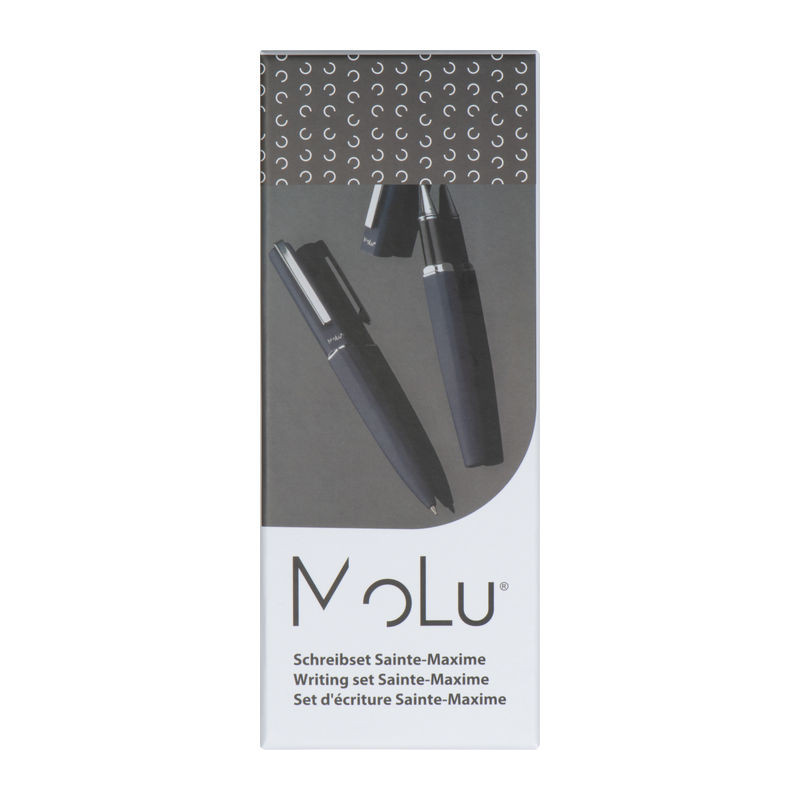 Egy exkluzív írókészlet, amely egy elegáns csavaros mechanizmusú golyóstollat és egy kifinomult rollertollat tartalmaz. Mindkét MoLu írószer újrahasznosított rozsdamentes acélból készült, kényelmes gumírozott felülettel a könnyű használat érdekében. A finom, króm színű díszítések modern és letisztult megjelenést kölcsönöznek a készletnek. Mindkét tollon gravírozott MoLu logó található, amely kiemeli a különleges megjelenést és a kollekció exkluzivitását. Ez az írókészlet nem csupán egy praktikus eszköz a mindennapi használatra, hanem egy stílusos kiegészítő is, amely a professzionalizmust és az eleganciát testesíti meg. Ideális ajándéknak vagy promóciós tárgynak, amely maradandó benyomást kelt. Exkluzív csomagolásban, 2 év garanciával.