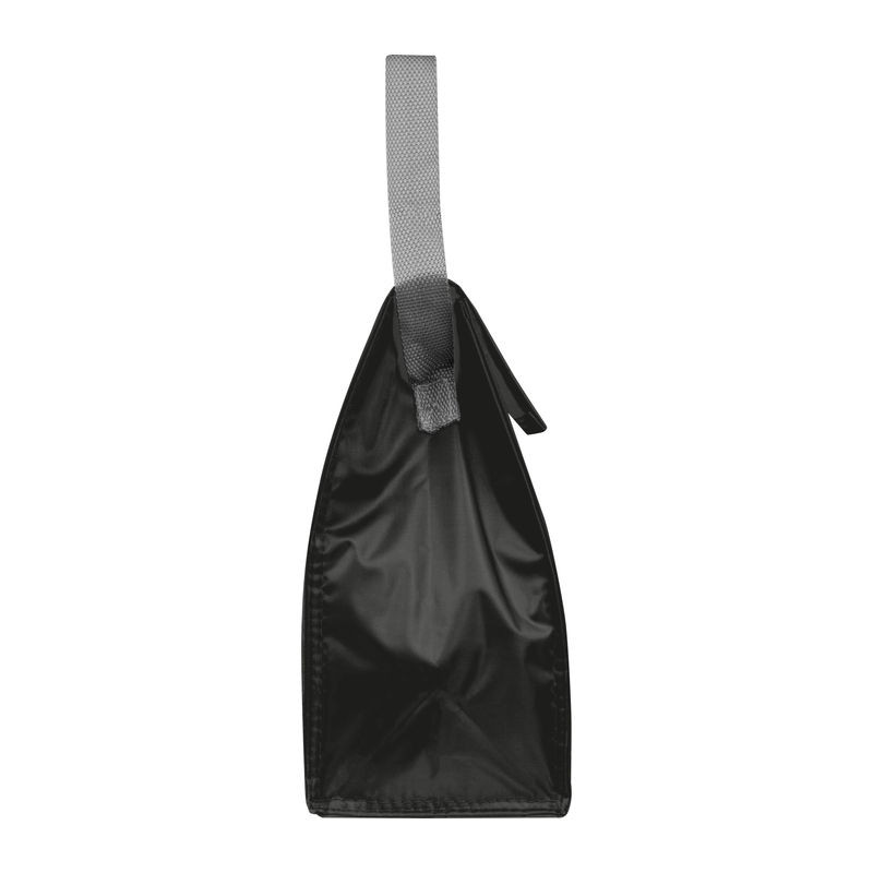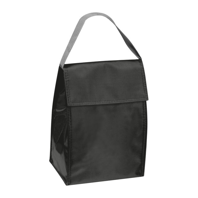 Poliészterből készült hűtőtáska belül szigetelő fóliával és tépőzáras záródással, kényelmes hordozófüllel.