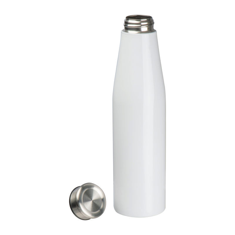 Menetes kupakkal zárható, fémből készült ivópalack. Űrtartalom 750 ml.