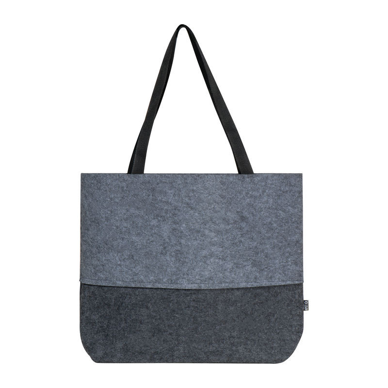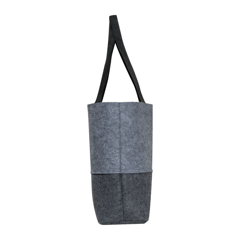 Újrahasznosított filcből készült bevásárlótáska, hosszú hordozófülekkel ellátva. Tartós és praktikus választás a tudatos vásárláshoz.