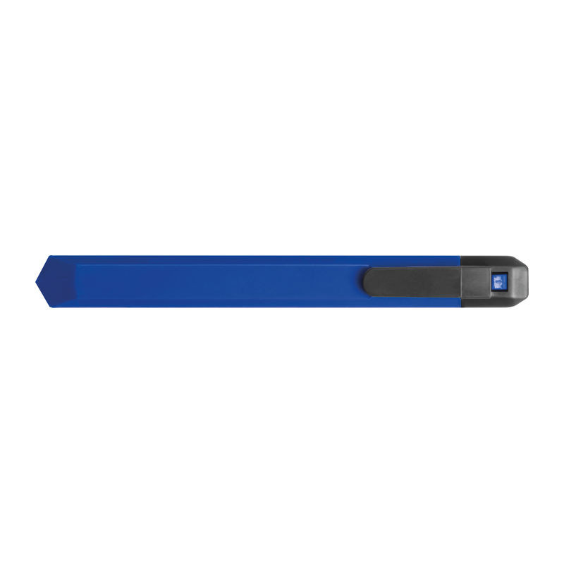 Több színben is választható papírvágó kés, 12 alkalommal letörhető pengével és ruhához rögzíthető csipesszel.