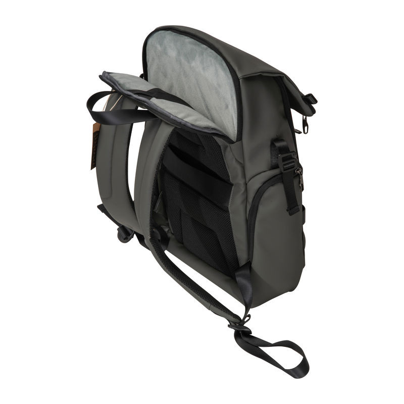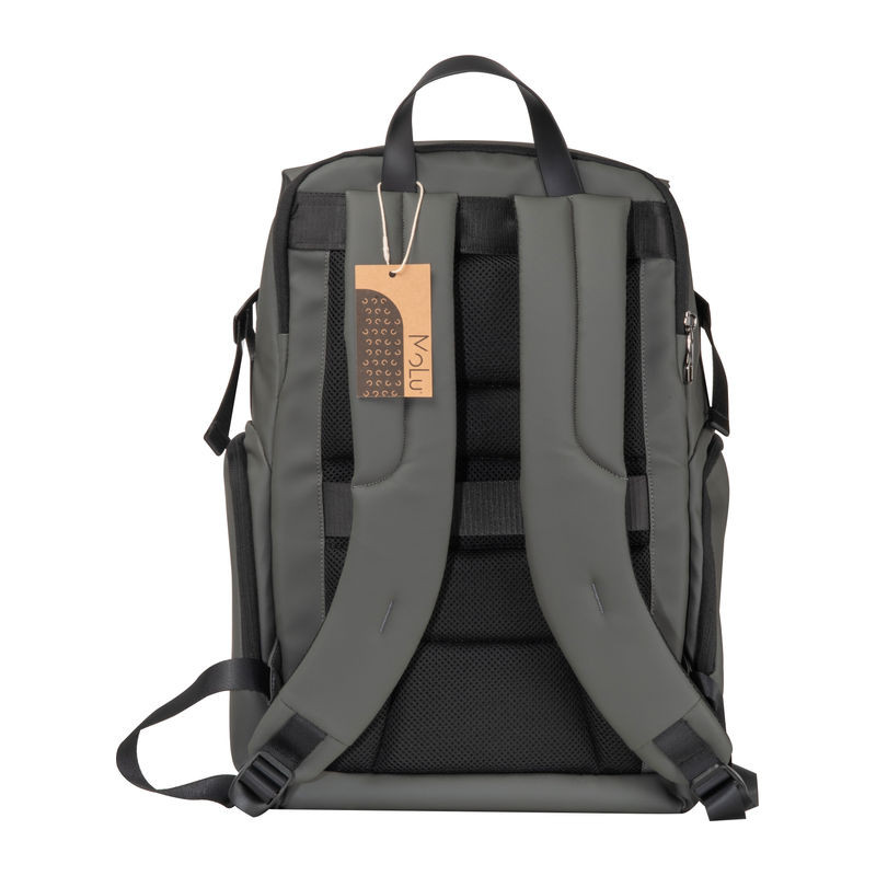 Újrahasznosított poliészterből készült, modern megjelenésű hátizsák a MoLu kollekcióból. Elegáns és stílusos, funkcionális belső kialakításának köszönhetően tágas helyet biztosít a pakoláshoz. Bársonyos plüss laptoptartó rekesze és ikonikus patkó minázata, mely belső borítását dísziti a hátizsáknak különleges megjelenést biztosít. Megbízható társ utazáshoz bőrönpántjának és teljesen nyitható tároló rekeszének köszönhetően. Emelett párnázott hátrésze és vállpántjai ideálissá teszik a mindennapi használatra is. Exkluzív formatervezéssel és magas minőségű kidolgozással! 2 év garanciával.