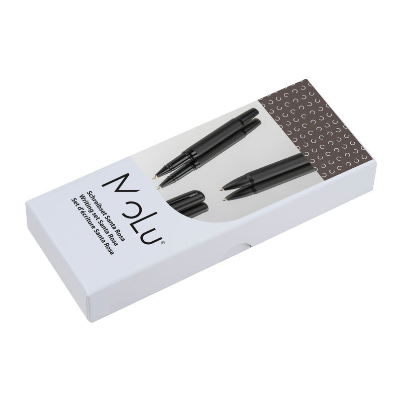 Prémium minőségű, kék tintával töltött MoLu írókészlet újrahasznosított acélból, amely egy bordázott mintázatú golyóstollat és egy csavaros mechanizmusú golyóstollat tartalmaz elegáns dizájnban. A MoLu logó diszkréten, matt fekete színnel van nyomtatva a fekete gyűrűn. Kiváló magas minőségű ajándék a kifinomult ízléssel rendelkezők számára. Exkluzív ajándékcsomagolásban, 2 év garanciával.