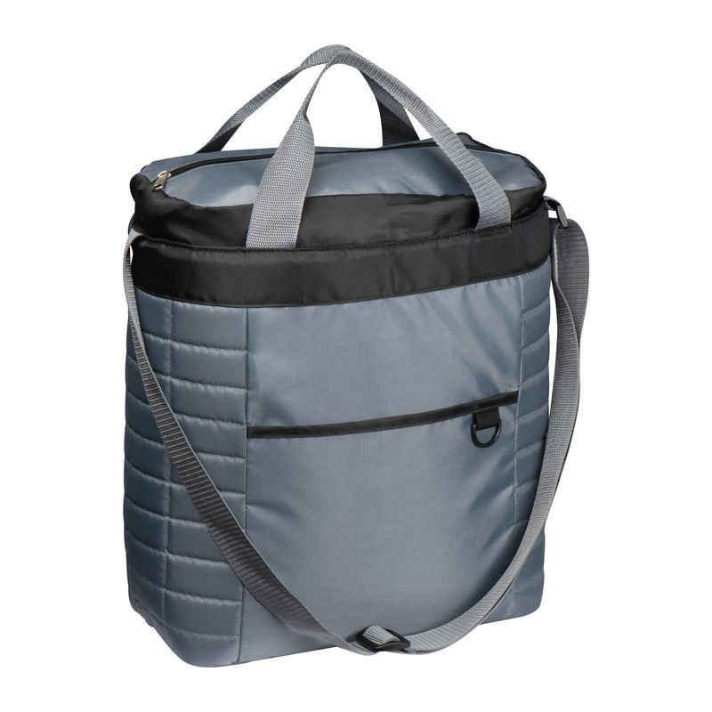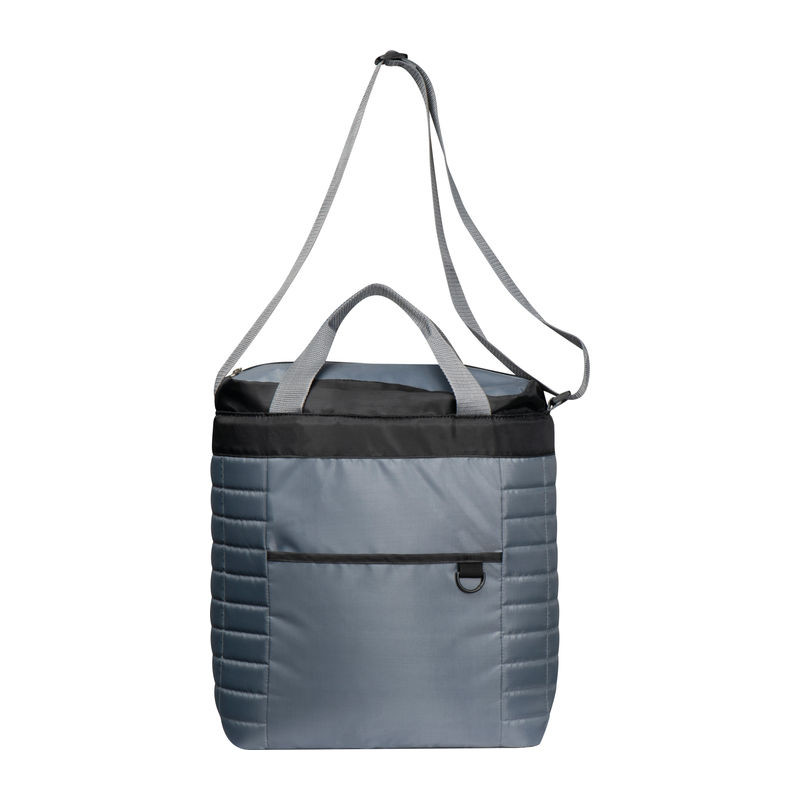 Hűtőtáska 420D poliészterből steppelt dizájnnal, elülső zsebbel, pánttal és 2 füllel.