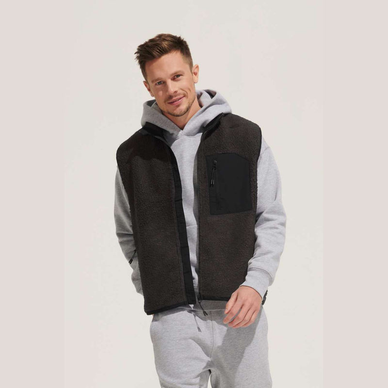 70% újrahasznosított poliészter - 30% poliészter. Polár bélés: 100% poliészter és taslon betétek 100% poliamid. Stílus. Fő záródás és oldalzsebek kontrasztos fordított műanyag cipzárral. Kontrasztos taslon mellzseb fordított műanyag cipzárral. Kontrasztos taslon pántos szegés a karkivágásnál és az alján. Fekete cipzárhúzó fényvisszaverővel. Szegély rugalmas húzózsinórral és kontrasztos zsinórvéggel. Kényelmes szabás. Hátul valamivel hosszabb.