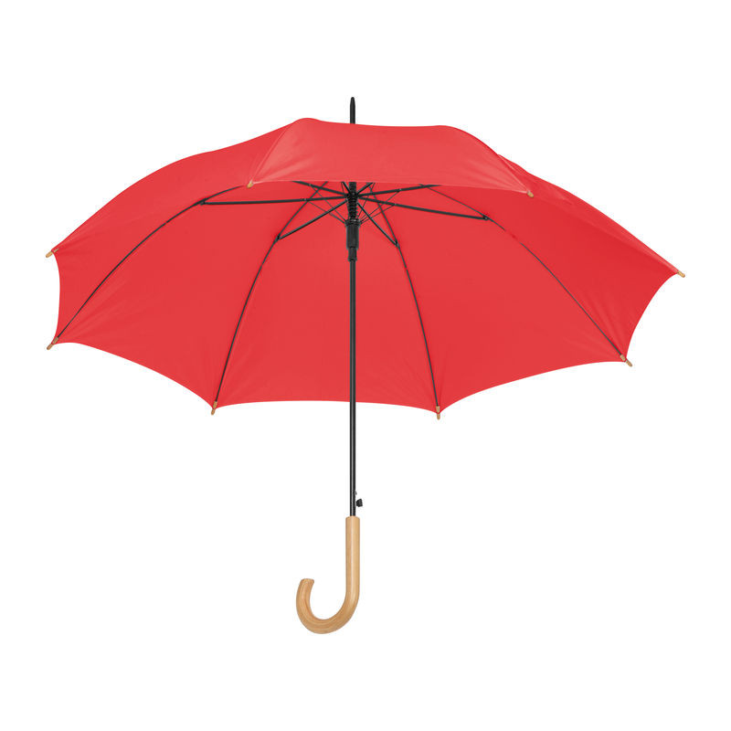 Automata esernyő 190T poliészter anyagból, ívelt fa nyéllel és fekete fémvázzal.