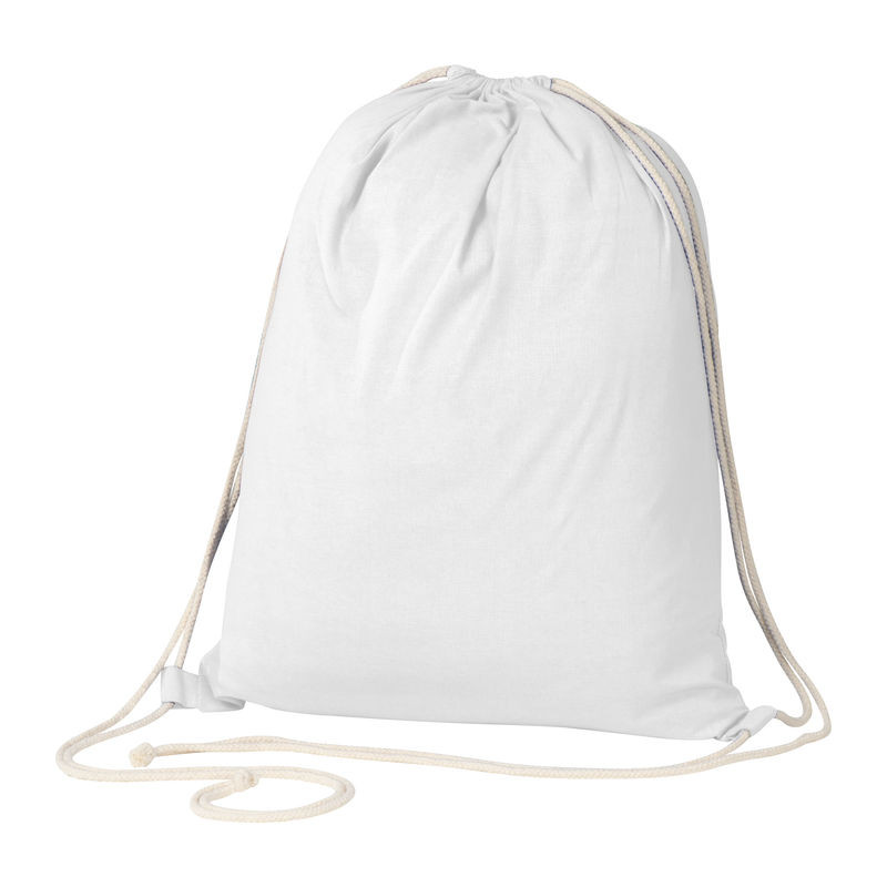 100% OEKO-TEX pamutból készült, környezetbarát pamut tornazsák, húzózsinórral. Anyagvastagság: 140 g/m²