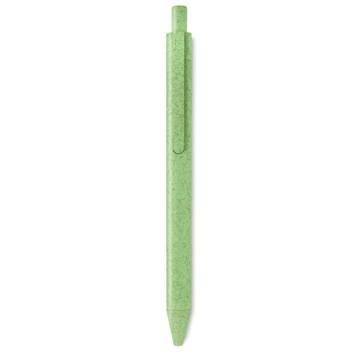 Nyomógombos golyóstoll búzaszalmából (50%) és ABS műanyagból (50%). Kéken író betéttel.