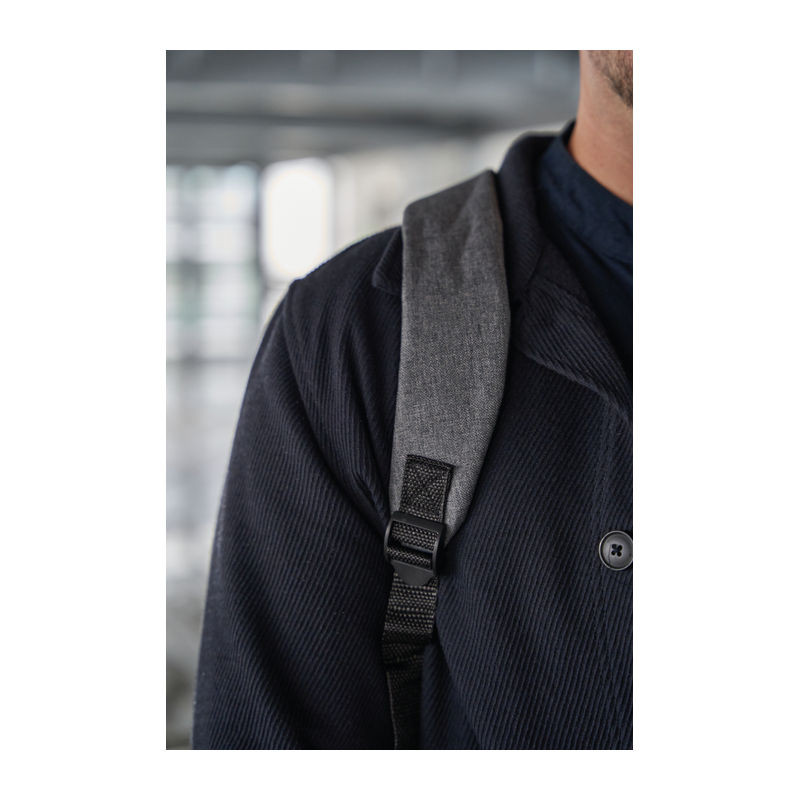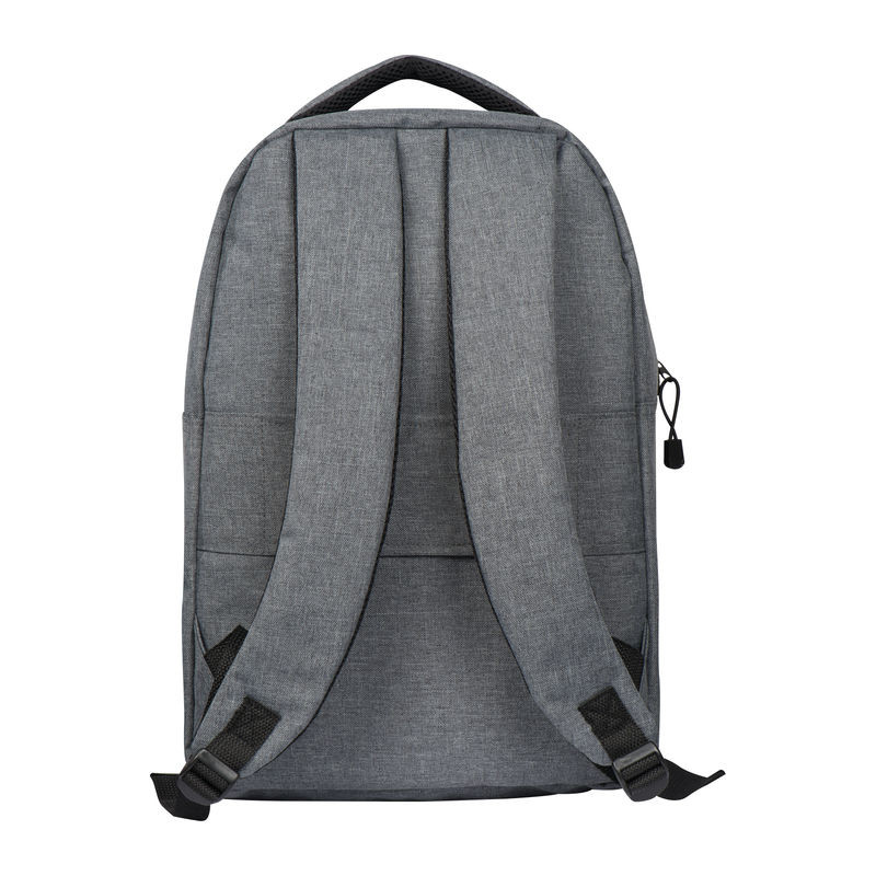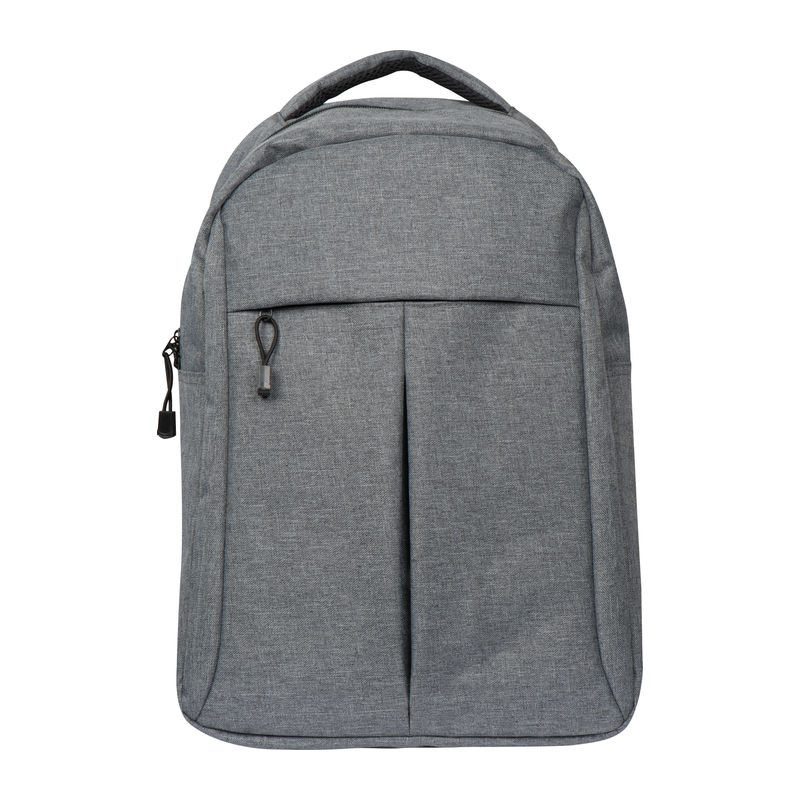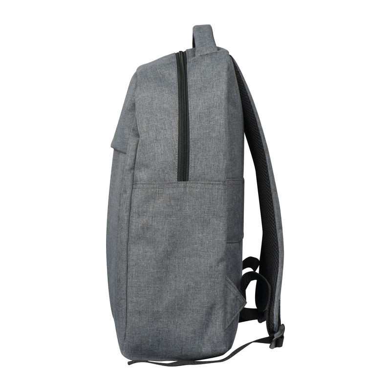 600D poliészter anyagú hátizsák, fekete cipzárral és elülső zsebbel. A fő tárolója laptopok és notebookok tárolására alkalmas.