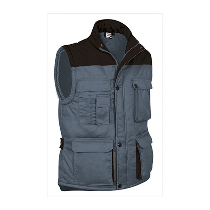 Munkaruházati mellény, külső rész 65% poliészter, 35% pamut, 200gr/m² twill anyag. Bélés 100% poliészter, 220gr/m². Bal mellrészen cipzáras zseb (könnyen hímezhető/emblémázható). Magas gallér cipzárral a teljes hosszon. Oldalsó állítók, belső zseb, 2 db tollzseb. Telefonzseb a jobb mellrészen. Nagy felülettel a hátrészen az emblémázás számára (könnyen hímezhető/szitázható).