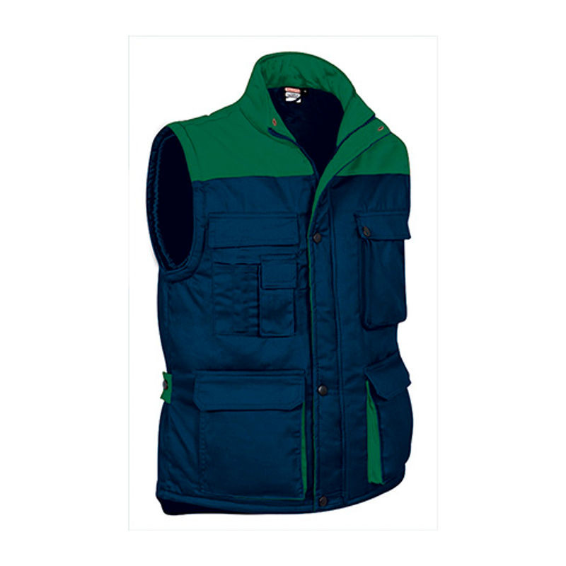 Munkaruházati mellény, külső rész 65% poliészter, 35% pamut, 200gr/m² twill anyag. Bélés 100% poliészter, 220gr/m². Bal mellrészen cipzáras zseb (könnyen hímezhető/emblémázható). Magas gallér cipzárral a teljes hosszon. Oldalsó állítók, belső zseb, 2 db tollzseb. Telefonzseb a jobb mellrészen. Nagy felülettel a hátrészen az emblémázás számára (könnyen hímezhető/szitázható).