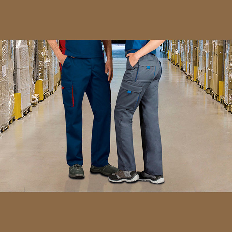 65% poliészter, 35% pamut, 240 grs / m² twill szövet. Rugalmas derék hátul. 2 derékzseb, 2 hátsó fedélzseb, 2 rakomány oldalsó zseb. Gomb és cipzár bezárása. Megerősített varratok. A Thunder szetthez (póló, pulóver, mellény) illik.