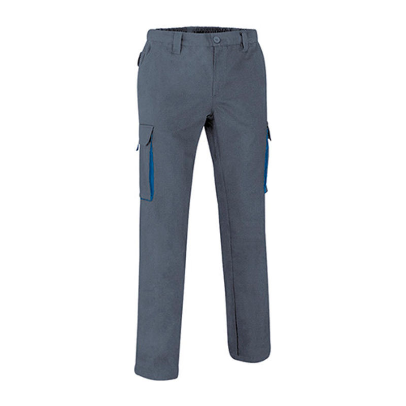 65% poliészter, 35% pamut, 240 grs / m² twill szövet. Rugalmas derék hátul. 2 derékzseb, 2 hátsó fedélzseb, 2 rakomány oldalsó zseb. Gomb és cipzár bezárása. Megerősített varratok. A Thunder szetthez (póló, pulóver, mellény) illik.