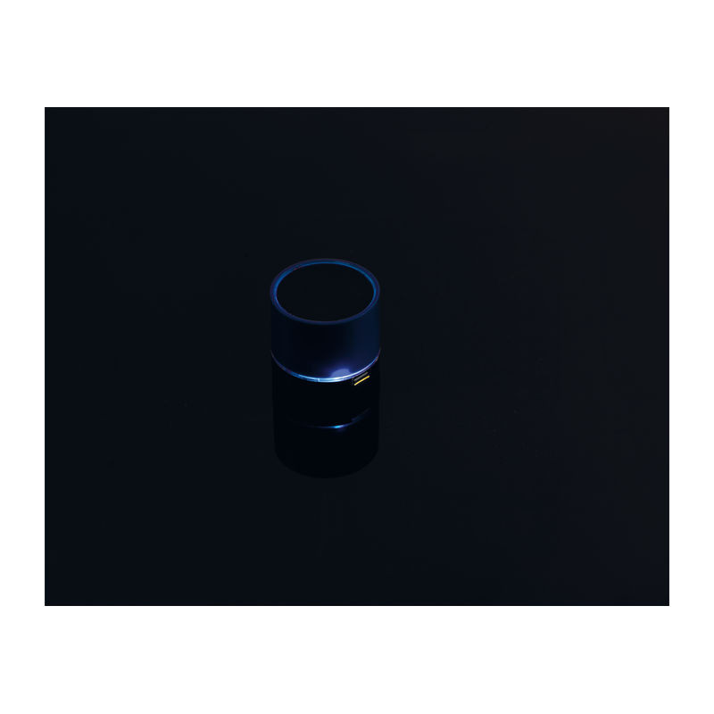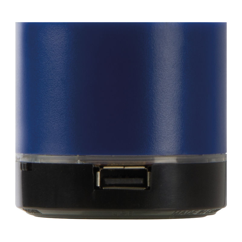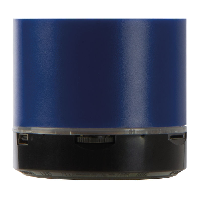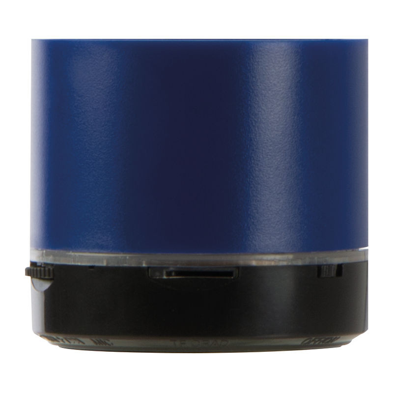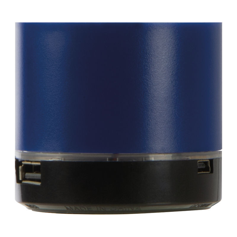 Fém hatású, hordozható Bluetooth hangszóró műanyagból, melyen egy vékony LED világítás fut körbe, mely a lejátszás ideje alatt világít. MicroSD aljzattal ellátva.