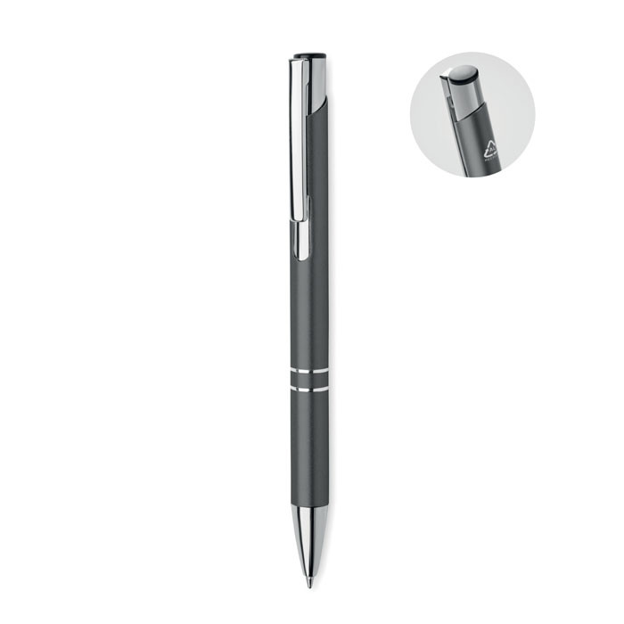 Nyomógombos golyóstoll újrahasznosított alumíniumból. Kéken író betéttel.