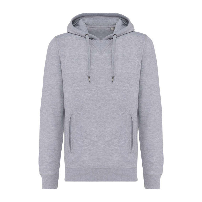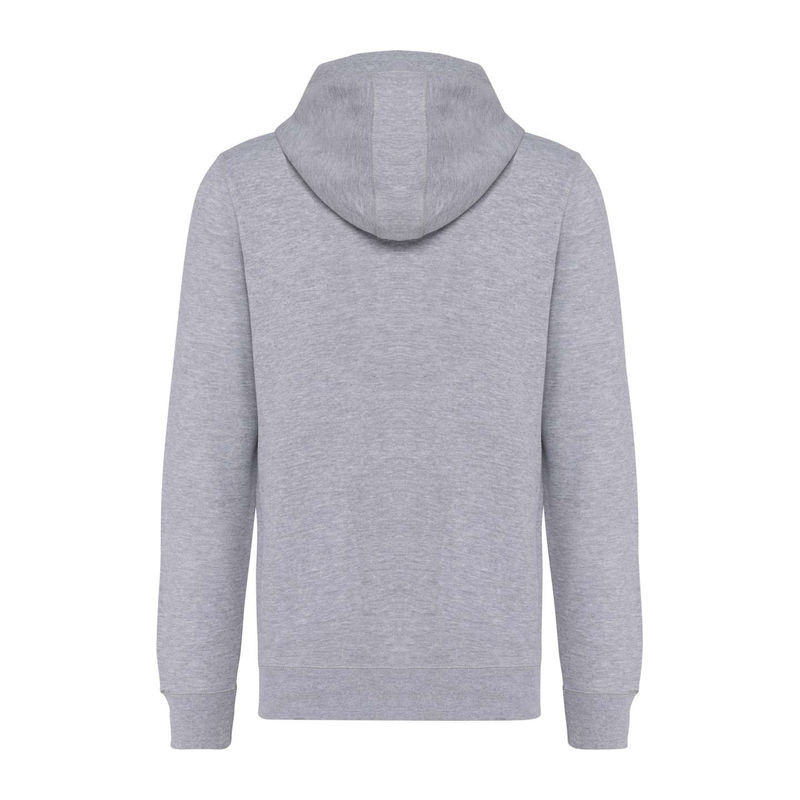80% organikus pamut / 20% használat utáni újrahasznosított poliészter. Oxford Grey 75% organikus pamut / 25% használat utáni újrahasznosított poliészter. French terry LST (alacsony zsugorodású terry). Szövet: enzimmosott. Karcsúsított szabás. 2 paszpolos elülső zseb. Bordázott mandzsetták, szegély és bélelt kapucni, hozzáillő húzózsinórral, fém zsinórvéggel. Félhold alakú kivitel a nyakkivágásnál, hogy megkönnyítse a belső dekorációs hozzáférést. Twill pántos nyak és V-alakú nyakkivágás. A nyaknál nincs márkacímke, csak méretjelölés az egyszerű dekoráláshoz. STANDARD 100 by OEKO-TEX®N° CQ1007/8, IFTH tanúsítvánnyal.