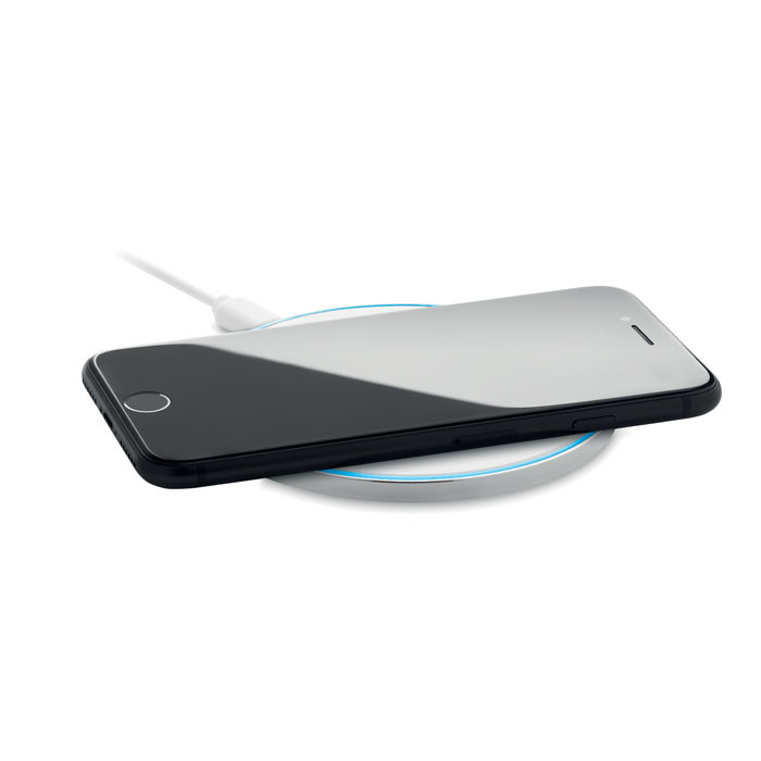 10 W alumínium vezeték nélküli töltő, üveglappal a tetején. Csatlakoztassa a készüléket számítógépéhez, és fektesse rá telefonját a töltéshez. Kék fény töltés közben. Teljesítmény: DC 9V/1.1A.