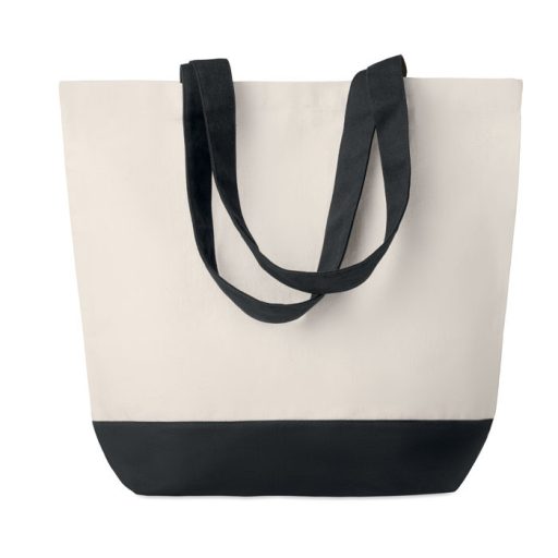 Bevásárló- vagy strandtáska 280 g vastag vászon anyagból, belső zsebbel. Színes aljjal és fülekkel.