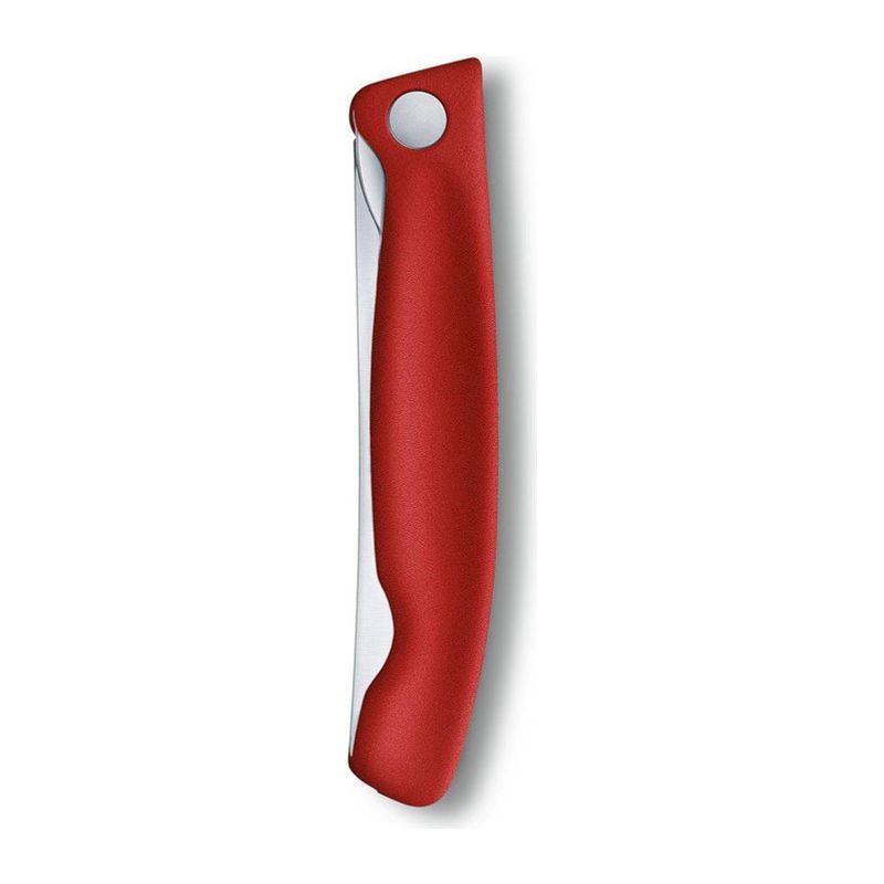 Svájci gyártású hámozó kés recés, rozsdamentes acél pengével, amely biztonságosan behajtható a markolatba. Kompakt és praktikus, bárhová elvihető kés gyümölcsök és zöldségek hámozására és aprítására.