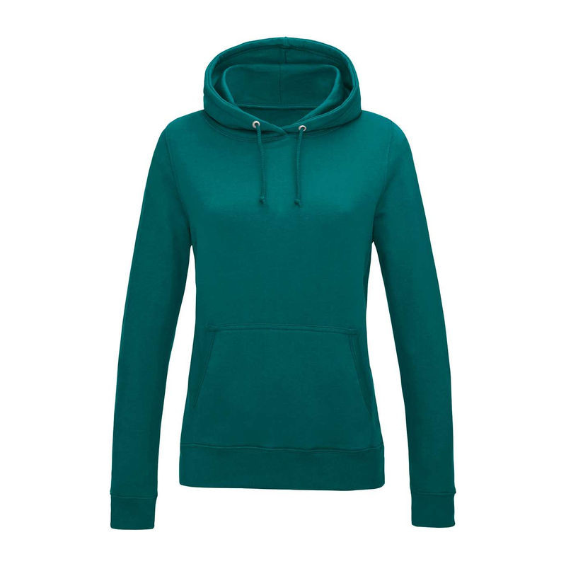 80% gyűrűs fonású pamut és 20% poliészter. Kétfalú női kapucnis pulóver, kenguruzseb, színben illeszkedő húzózsinór, kitéphetó címke. 280 g/m²