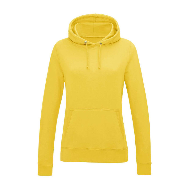 80% gyűrűs fonású pamut és 20% poliészter. Kétfalú női kapucnis pulóver, kenguruzseb, színben illeszkedő húzózsinór, kitéphetó címke. 280 g/m²