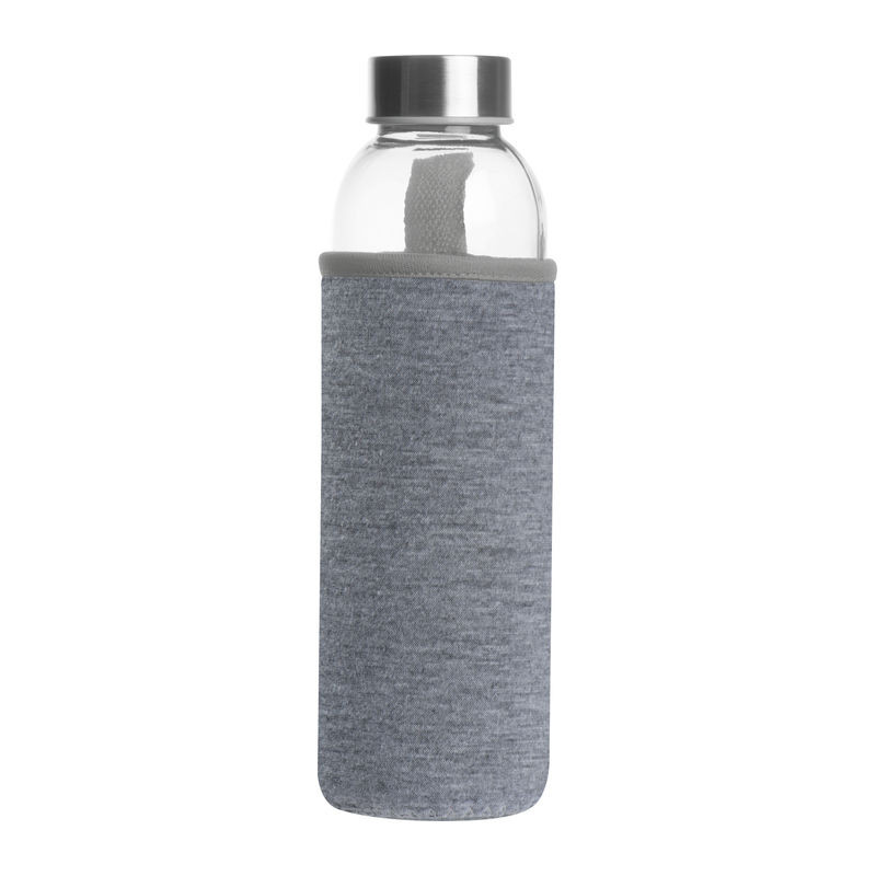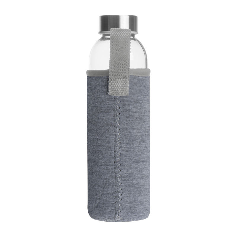 Üveg kulacs neoprén tokban hordozópánttal és szivárgásmentes fém kupakkal. Űrtartalom 500 ml.