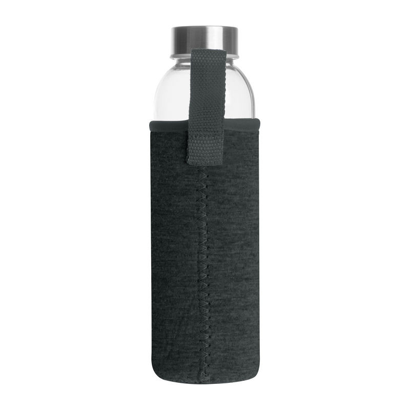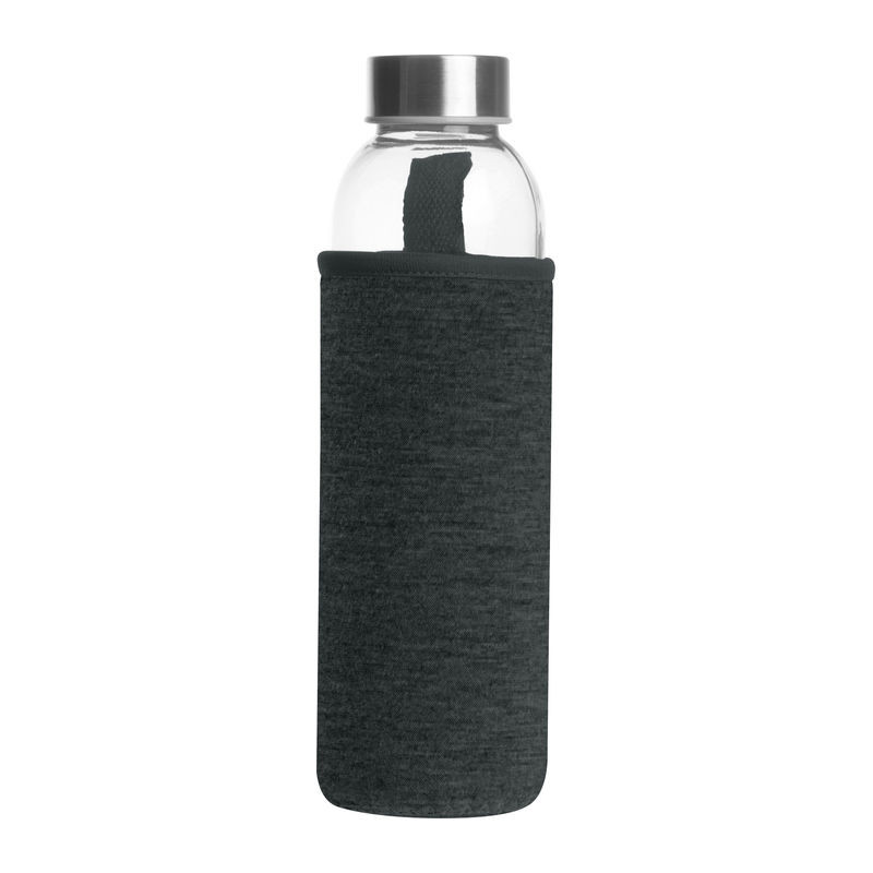 Üveg kulacs neoprén tokban hordozópánttal és szivárgásmentes fém kupakkal. Űrtartalom 500 ml.