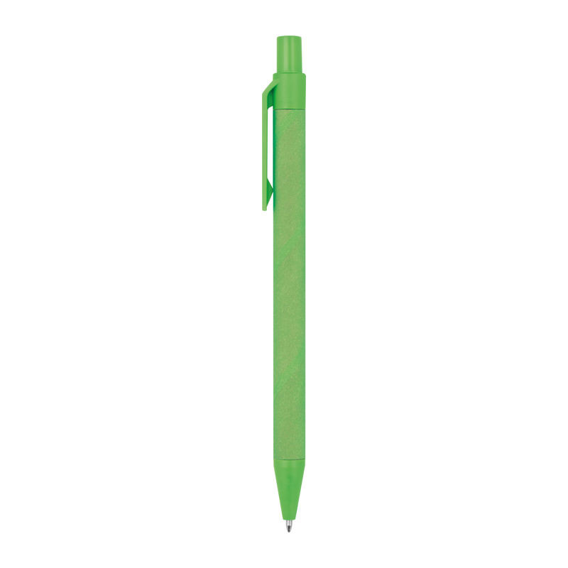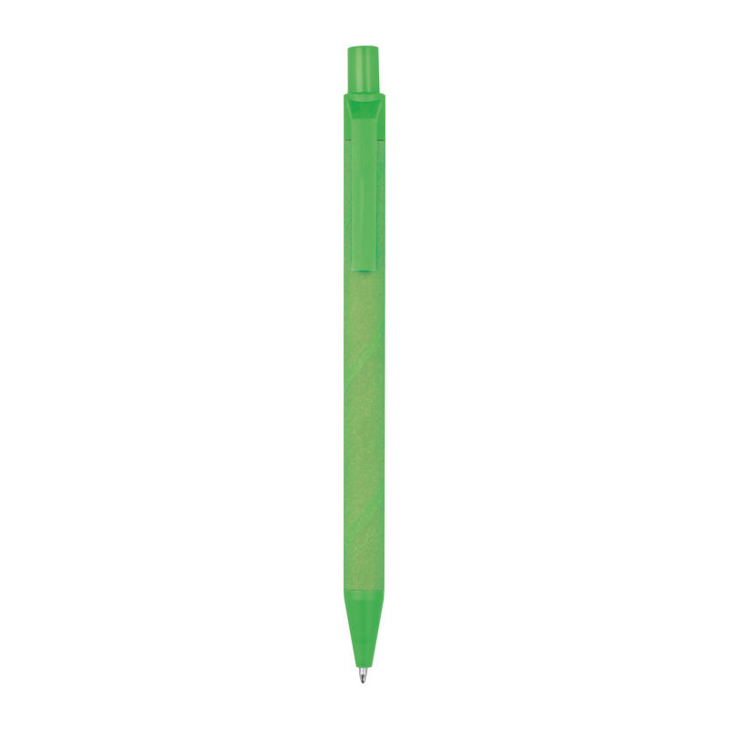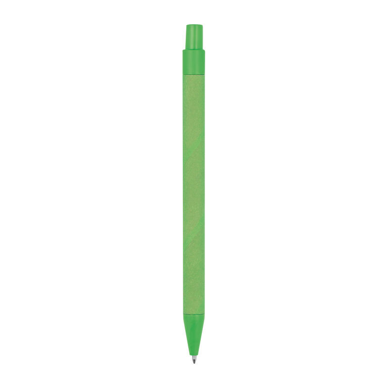 Kéken író golyóstoll, újrahasznosított papírból. A színes kiegészítők kukoricából készültek.