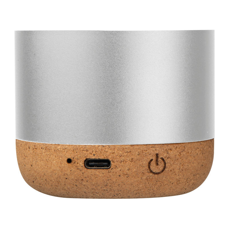 Bluetooth hangszóró újrahasznosított alumíniumból, parafa alappal. Bluetooth funkcióval (5.0 verzió), 300 mAh akkumulátorral és 2-3 órás töltési idővel, USB-C töltőkábellel. Akár 10 méteres hatótávolság a vezeték nélküli zenehallgatáshoz.