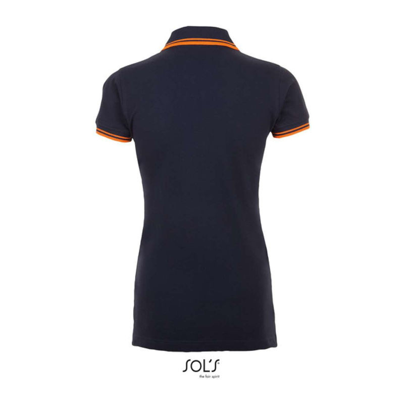 SOL's Pasadena Női rövid ujjú piké póló, 100% gyűrűsfonású pamutból, csíkozással a galléron. Három darab színre szín gombbal. Fit szabással, oldalsó sliccel.