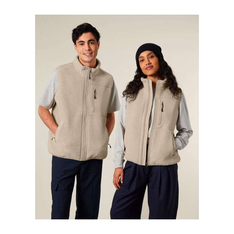 Uniszex sherpa mellény, amely 100% újrahasznosított poliészterből készült. Softshell részletekkel, bolyhosodásmentes polár anyaggal és rejtett cipzárakkal rendelkezik. Tökéletes választás egyedi kültéri viselethez.