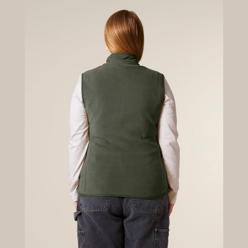 Prémium minőségű női ujjatlan polár mellény, amely 100% újrahasznosított poliészterből készült. Kiváló kényelmet és szabad mozgást biztosít, valamint testre szabható az anti-pill bevonatnak és a cipzáras zsebeknek köszönhetően.