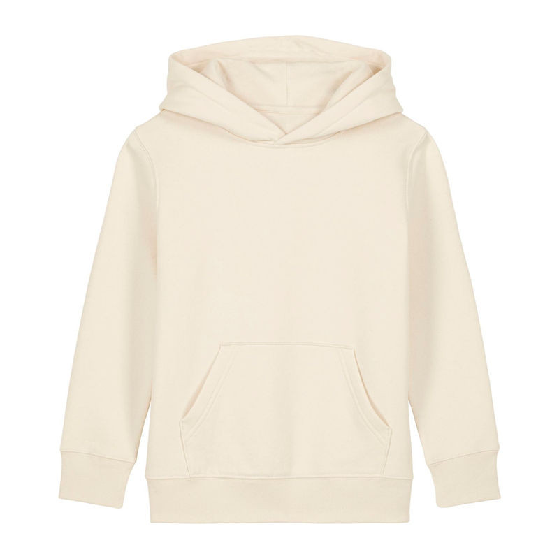 Prémium minőségű, 300 g/m² organikus pamutból készült gyermek kapucnis pulóver, amely dupla bélésű kapucnival, kenguruzsebbel és puha, bolyhos belsővel rendelkezik. Ideális választás családi összeöltözéshez, kiváló emblémázási lehetőségekkel.