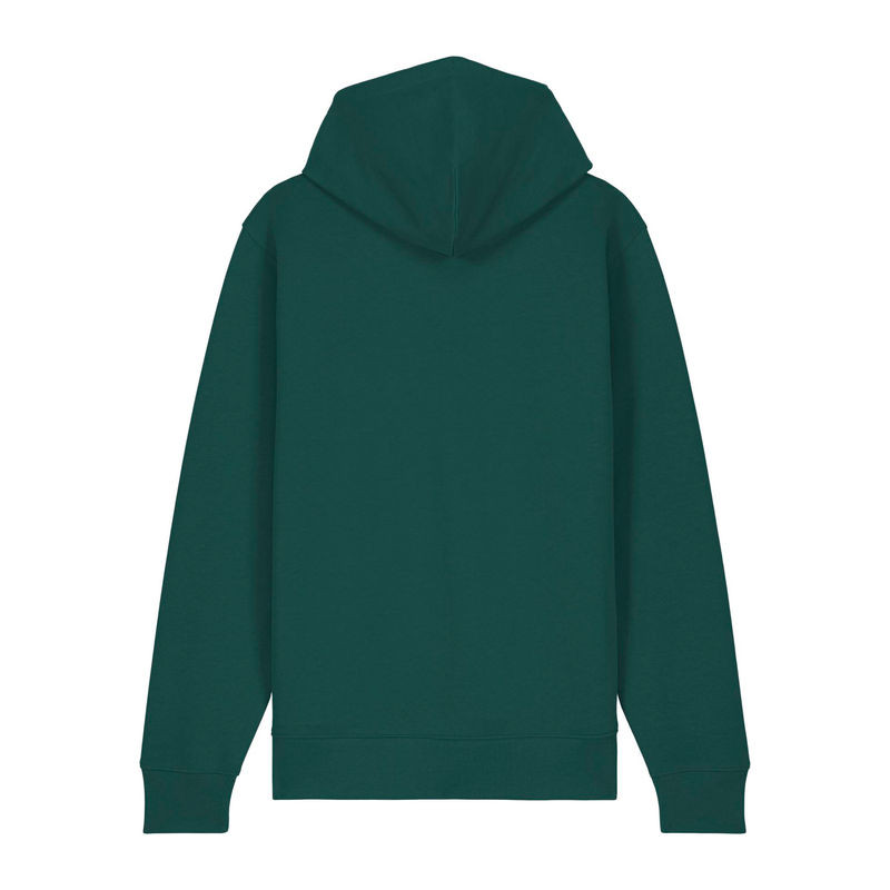 Stílusos, 350 g/m² súlyú, bolyhosított polár kapucnis pulóver modern szabásvonallal, teljes cipzárral és kenguruzsebekkel rendelkezik. 100% organikus pamutból készült.